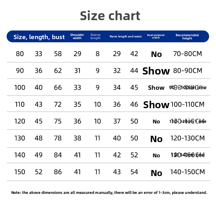 Sizes: 80cm, 90cm, 100cm, 110cm, 120cm, 130cm, 140cm, 150cm, 160cm.