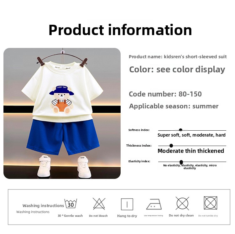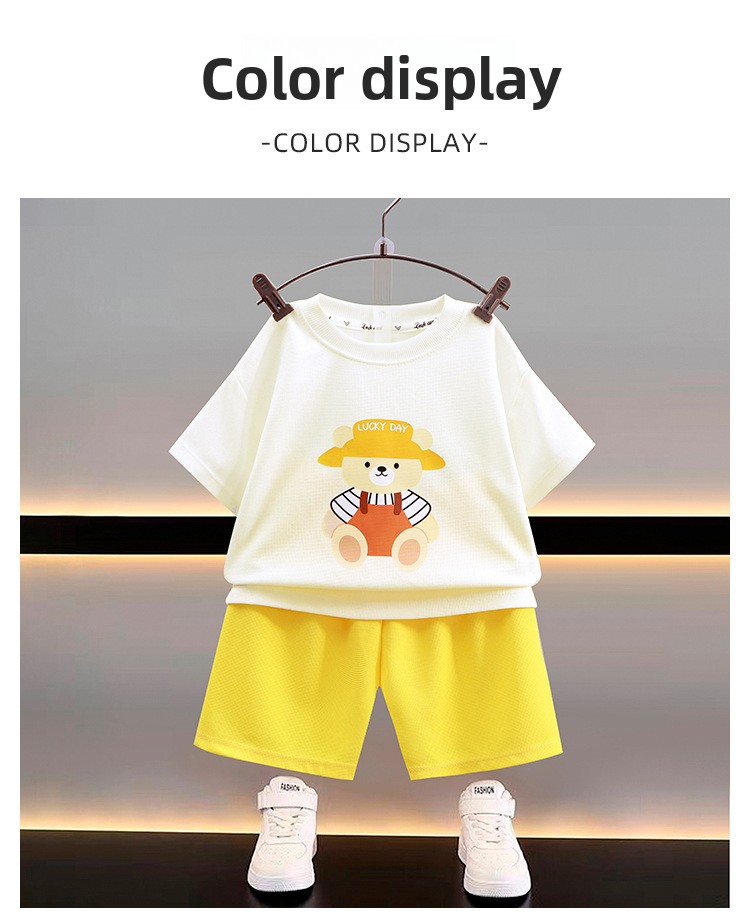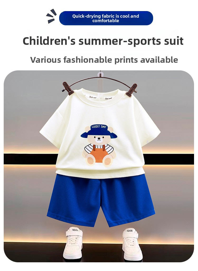 Casual Style: Sporty two-piece set with short sleeves and shorts for active kids.
